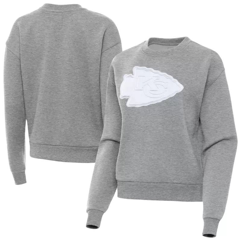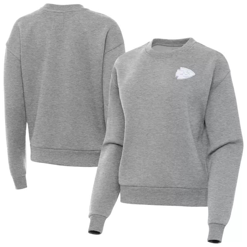 Women’s Antigua Heather Gray Kansas City Chiefs Victory Crew Pullover Sweatshirt