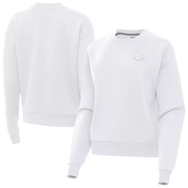 Women’s Antigua White Kansas City Chiefs Victory Crew Pullover Sweatshirt