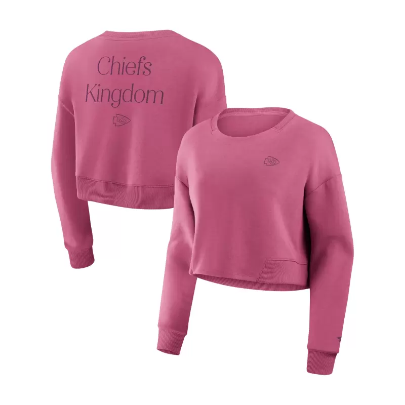Women’s Fanatics Pink Kansas City Chiefs Studio Tri-Blend Cropped Pullover Sweatshirt