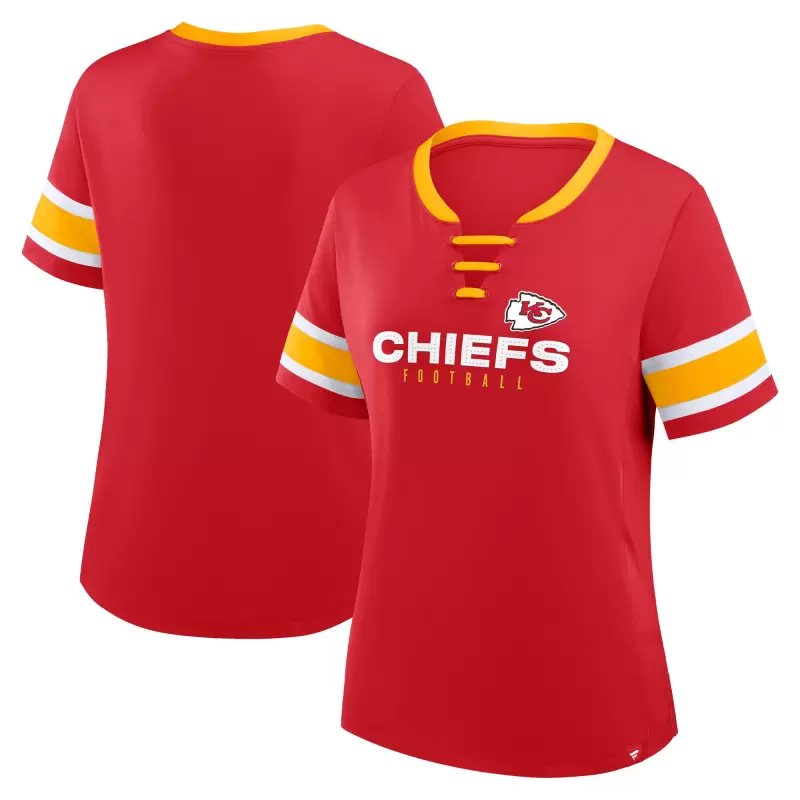 Women’s Fanatics Red Kansas City Chiefs Plus Size Red Zone Athena Lace-Up V-Notch Neck T-Shirt