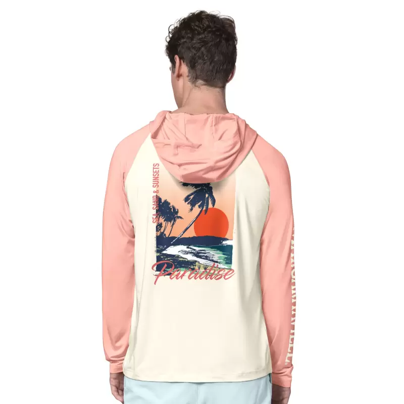 Men’s Margaritaville Cream/Amber Kansas City Chiefs Sand, Sea, Sunsets Long-Sleeve Rashguard Hoodie Pullover