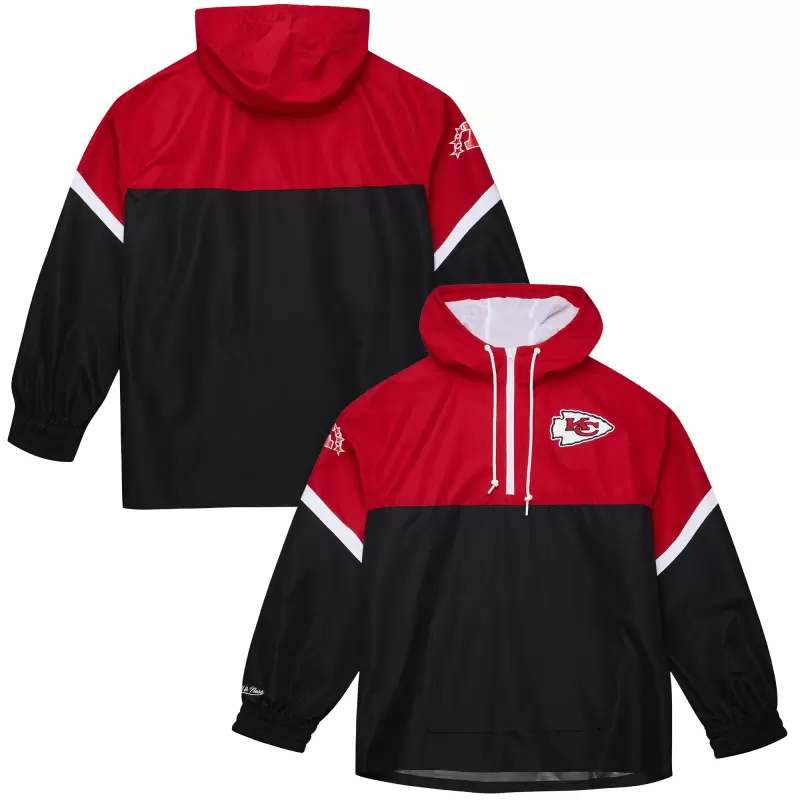 Men’s Mitchell & Ness Red/Black Kansas City Chiefs Tie Breaker Vintage Logo Lightweight Anorak Half-Zip Windbreaker
