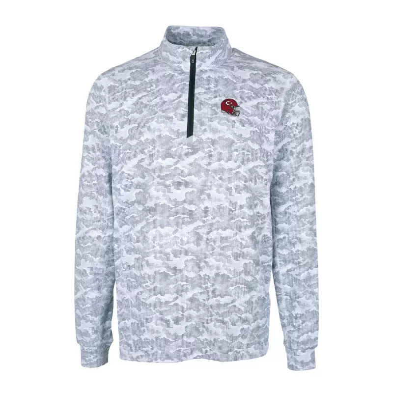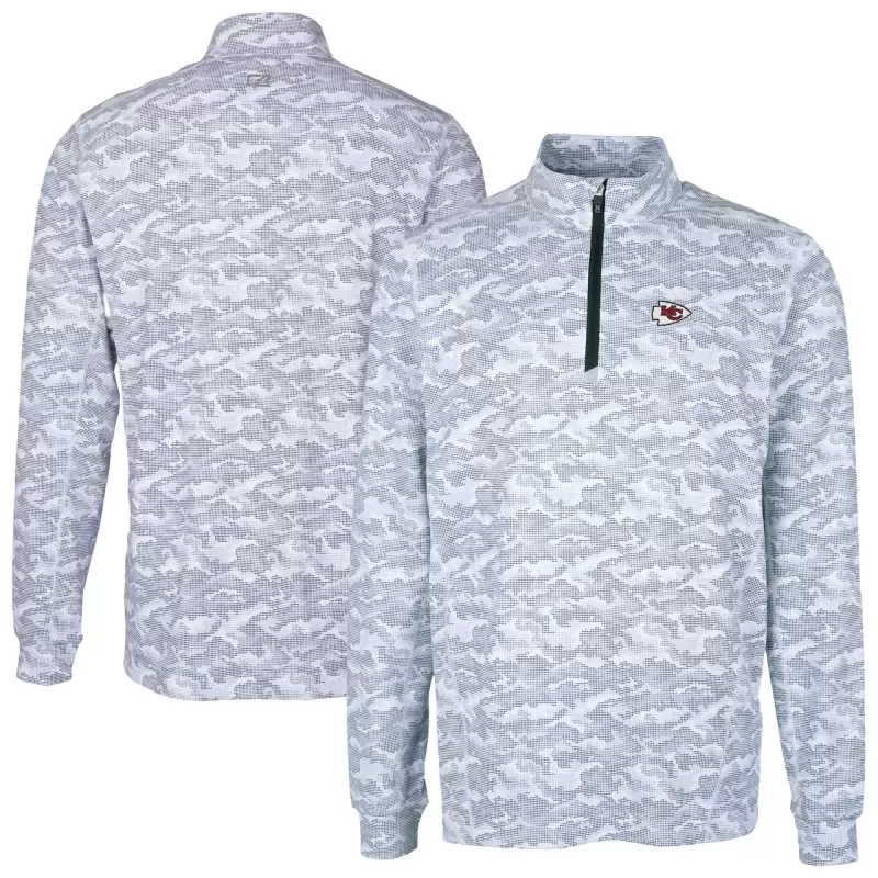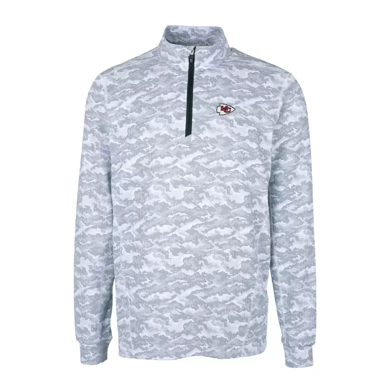Men’s Cutter & Buck Charcoal Kansas City Chiefs Helmet Traverse Camo Print Stretch Quarter-Zip Pullover Top