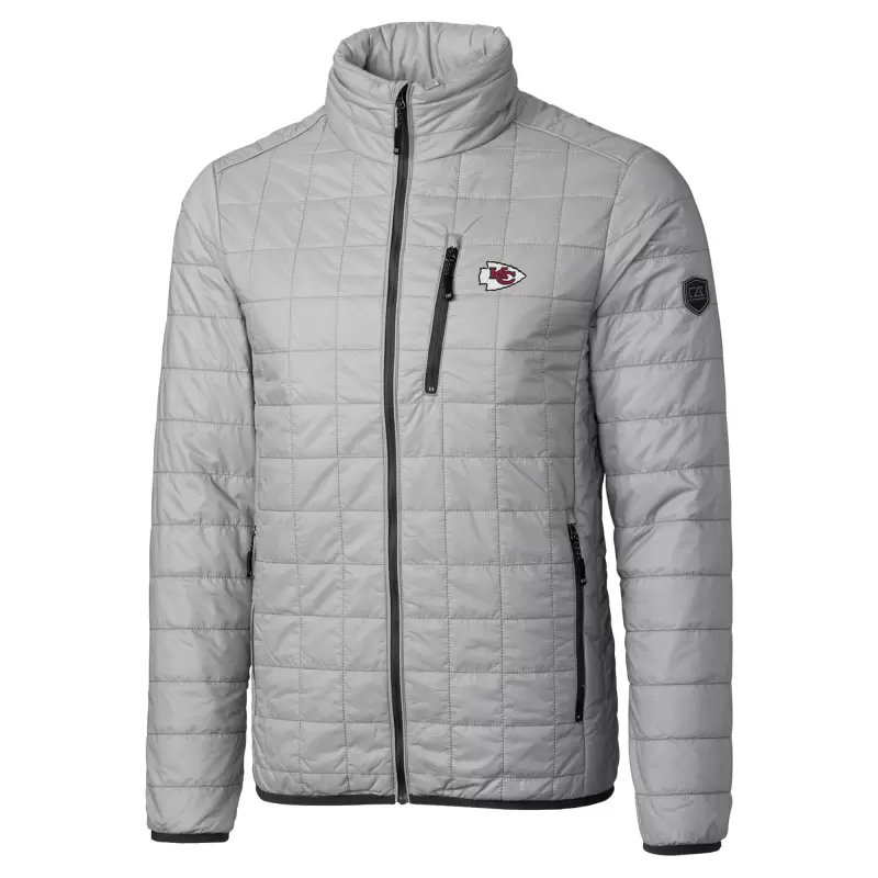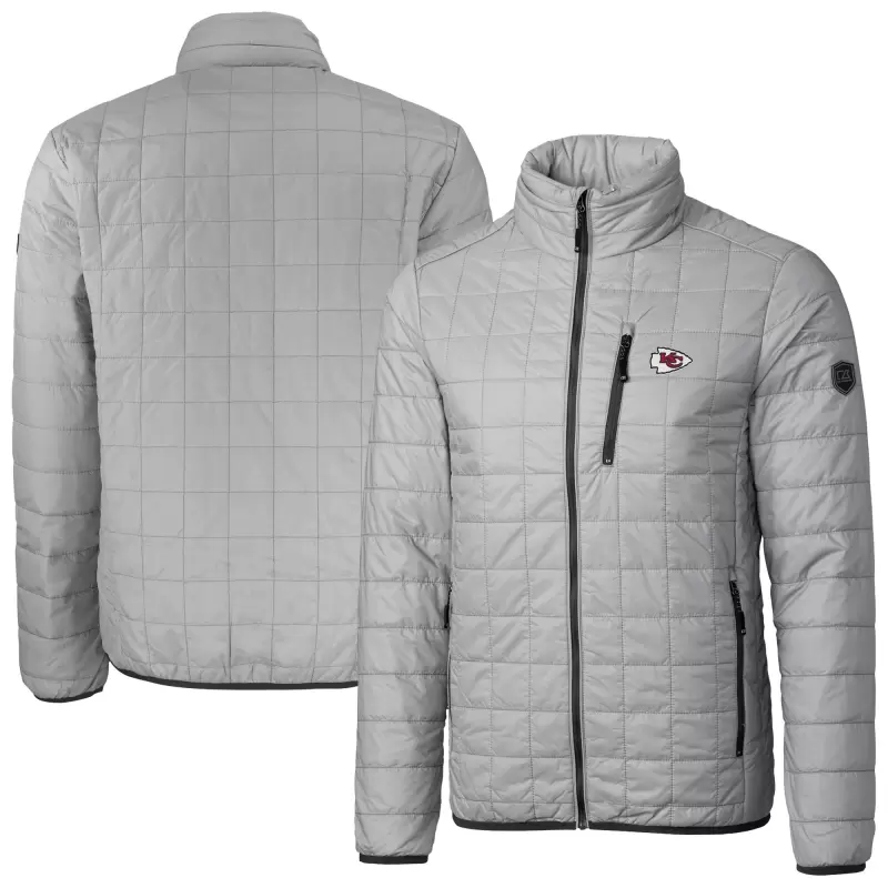 Men’s Cutter & Buck Gray Kansas City Chiefs Big & Tall Rainier PrimaLoft Eco Insulated Full-Zip Hoodie Puffer Jacket