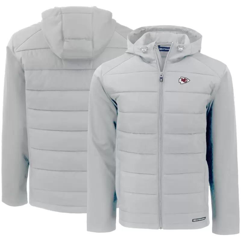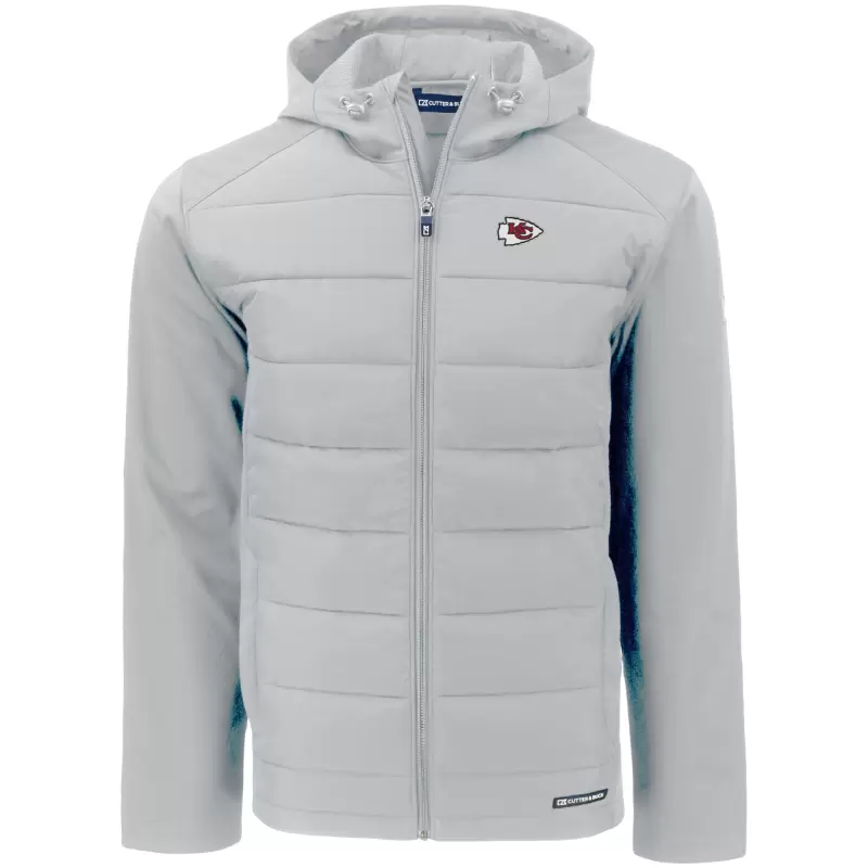 Men’s Cutter & Buck Gray Kansas City Chiefs Evoke PrimaLoft Hybrid Eco Softshell Recycled Full-Zip Hooded Jacket