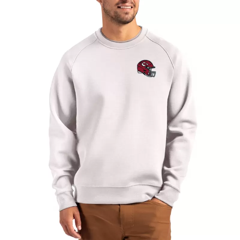 Men’s Cutter & Buck Gray Kansas City Chiefs Helmet Roam Recycled Raglan Pullover Sweatshirt