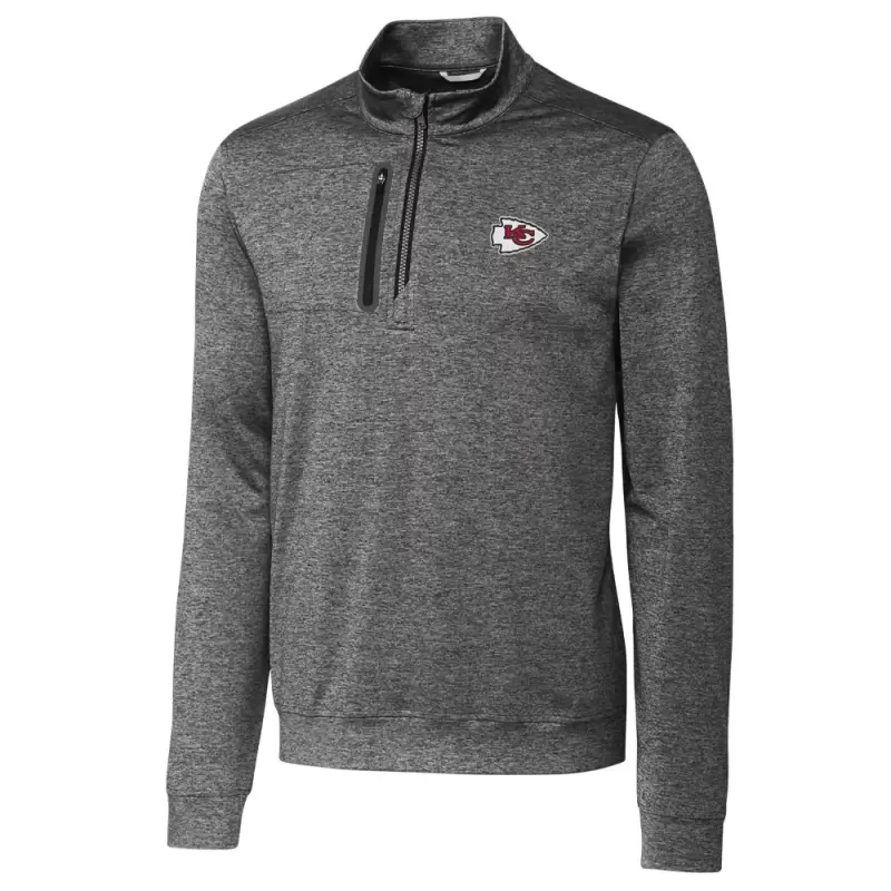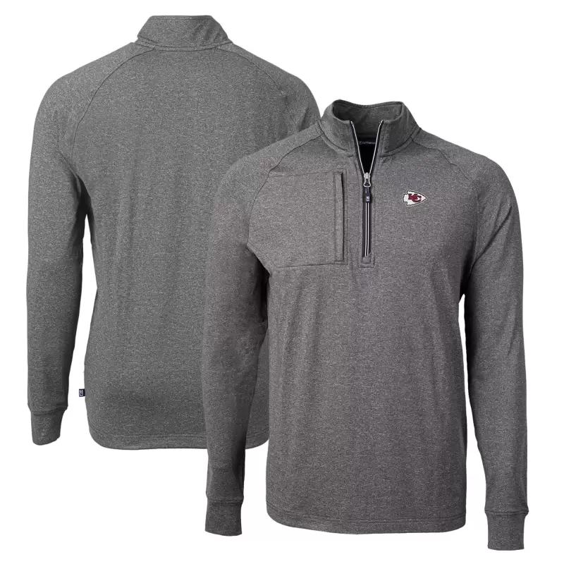 Men’s Cutter & Buck Heather Black Kansas City Chiefs Adapt Eco Knit Quarter-Zip Pullover Top