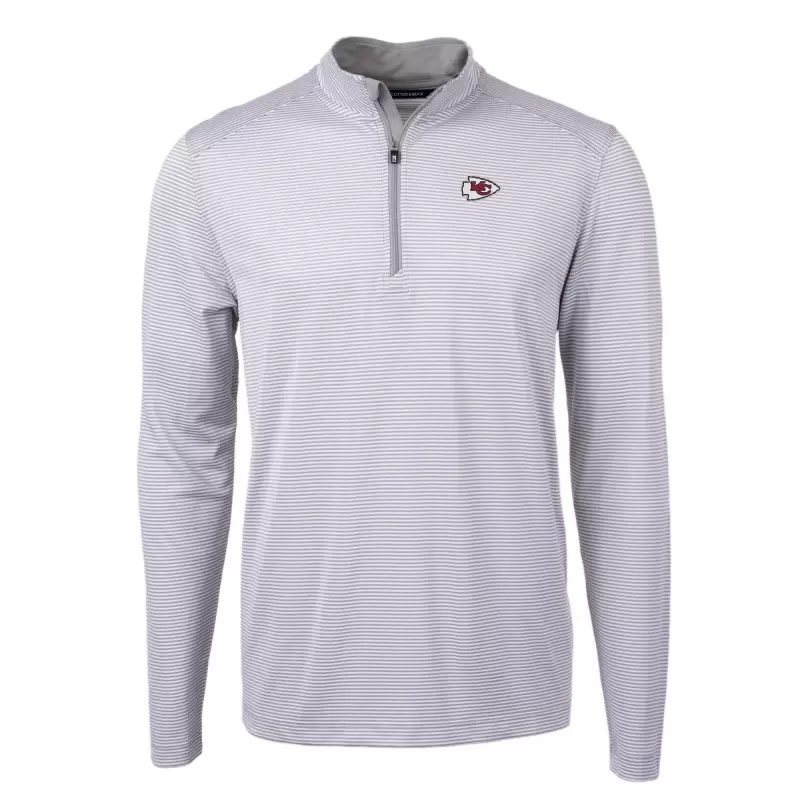 Men’s Cutter & Buck Gray/White Kansas City Chiefs Virtue Eco Pique Micro Stripe Recycled Quarter-Zip Pullover Top
