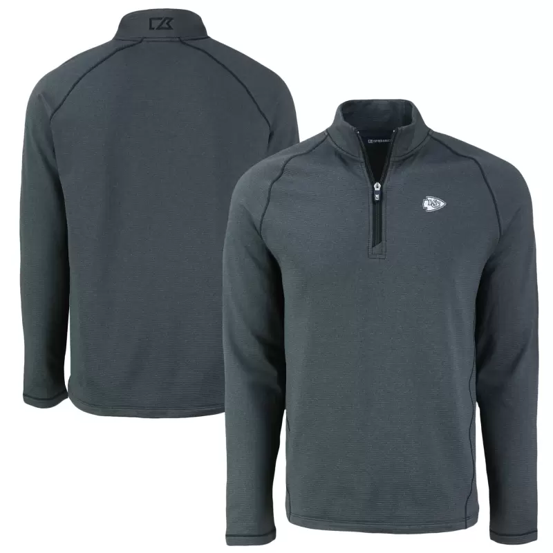 Men’s Cutter & Buck Heather Black Kansas City Chiefs Big & Tall Adapt Eco Raglan Quarter-Zip Jacket