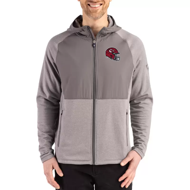 Men’s Cutter & Buck Gray Kansas City Chiefs Roam Epic Comfort Recycled Full-Zip Hoodie Jacket