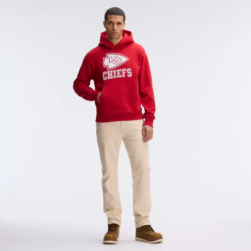 Show your unwavering support for the Kansas City Chiefs with this Flocked Hoodie. As part of the IconicFleece™ collection from Fanatics, this sweatshirt offers the same outstanding quality and attention to detail as the gear worn by the athletes. Crafted from premium, cotton-rich IconicFleece™ fabric, it delivers exceptional warmth, durability, and a luxurious feel. The heavyweight fleece and triple-needle seam construction ensure lasting quality, so you can be assured this pullover will survive anything game day throws at you. With a classic fit, dropped shoulder seams for flexible movement and a front pouch pocket, this hoodie is the perfect blend of comfort and style.