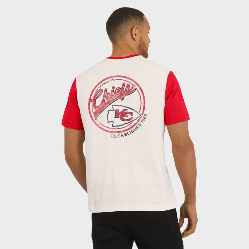 Elevate your everyday style with this Kansas City Chiefs Henley Colorblock Slub Pocket T-Shirt from the Darius Rucker Collection by Fanatics. The slub fabric gives it a unique, textured look, while the three-button henley placket elevates this tee beyond your average Kansas City Chiefs apparel, making it a stylish way to show your team spirit.. The distressed, printed wordmark on the front pocket and team graphics on the back with the established year offer a vintage look that highlights your Kansas City Chiefs pride.