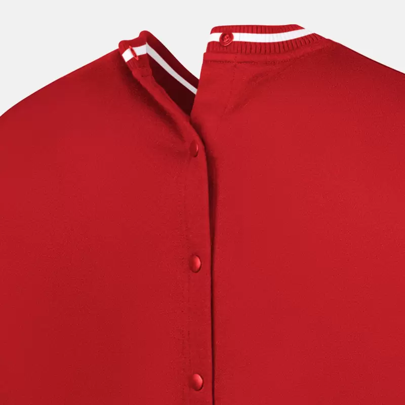 - Snap-button closures placed along center back to aid caregivers when dressing someone