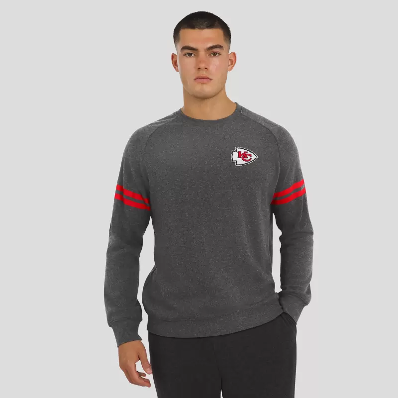 The countdown to Kansas City Chiefs kickoff is on so look the part with this Players Lounge Raglan Tri-Blend Sweatshirt by J. Palmer. Featuring rib-knit cuffs, hem, and neckline, it offers a snug fit that helps prevent stretching, ensuring it stays in great shape wear after wear. The raglan sleeves offer increased range of motion, while the embroidered logo at the left chest and team-color sleeve stripes on both sleeves are perfect for cheering on the team from the stands or while lounging at home.