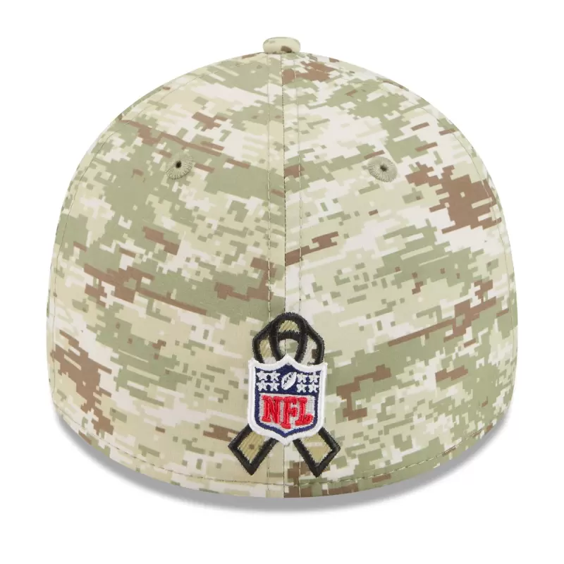 - Salute to Service ribbon sits behind embroidered NFL shield logo