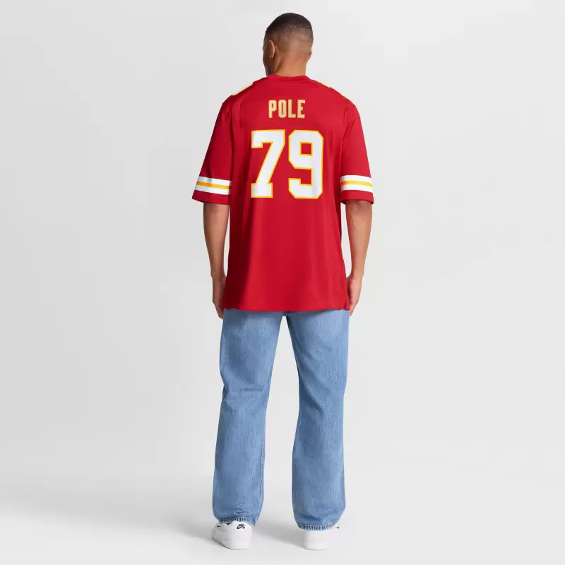 This Esa Pole Nike Game Jersey is an essential piece of gear for any Kansas City Chiefs fan looking to highlight their favorite player. The heat-sealed name, number and team details provide a kickoff-ready look that elevates your excitement for game day. Made with comfort in mind, this Kansas City Chiefs Team replica jersey delivers a standard, lightweight fit and features breathable mesh side panels for added ventilation.