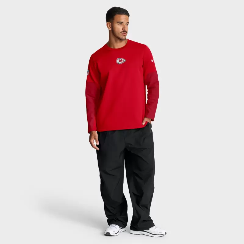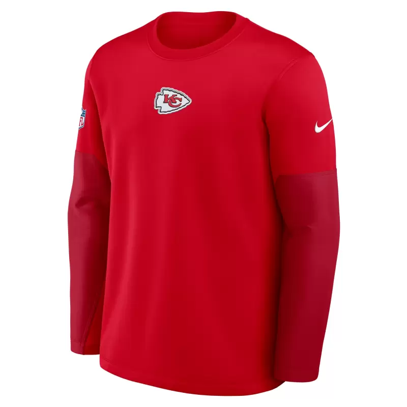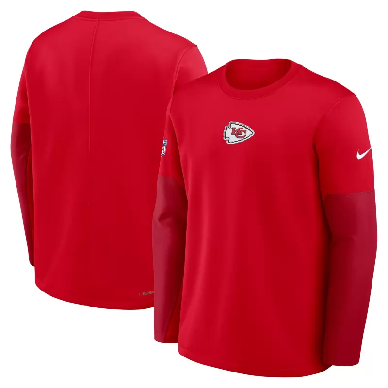 Stay at the ideal temperature in the same gear the Kansas City Chiefs wear with this Sideline Coach Therma-FIT Long Sleeve T-Shirt by Nike. Its brushed pique fleece fabric is enhanced with performance technology for a lightweight, breathable feel that keeps you warm and comfortable. A printed Kansas City Chiefs logo puts your fandom front and center in a modern look.