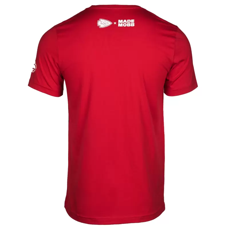 The Men’s Red Kansas City Chiefs x MADE MOBB T-Shirt is a must-have for any devoted Kansas City Chiefs fan. This officially licensed tee features screen-printed graphics on the front chest and back nape, proudly displaying your allegiance to the Chiefs. The coverstitched collar and sleeves, along with the MADE MOBB Hem Tag, add a touch of style and durability. Whether you’re cheering from the stands or simply showing your support, this T-shirt is the perfect way to represent the Kansas City Chiefs in style.