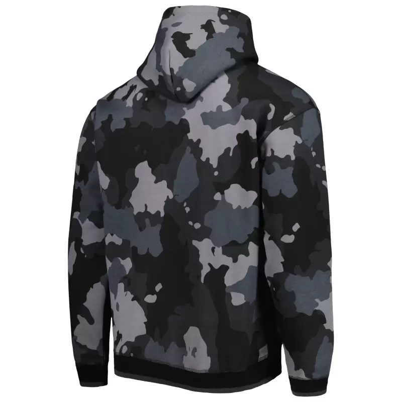 The Wild Collective Black Kansas City Chiefs Camo Pullover Hoodie is the ultimate way to show unwavering support for the Kansas City Chiefs. Crafted from a blend of organic cotton and recycled polyester, this midweight hoodie ensures both comfort and durability. The fleece lining provides warmth on chilly game days, while the front pouch pocket offers convenient storage for essentials. Heat-sealed graphics proudly display the Kansas City Chiefs logo, making this hoodie a must-have for any dedicated fan.