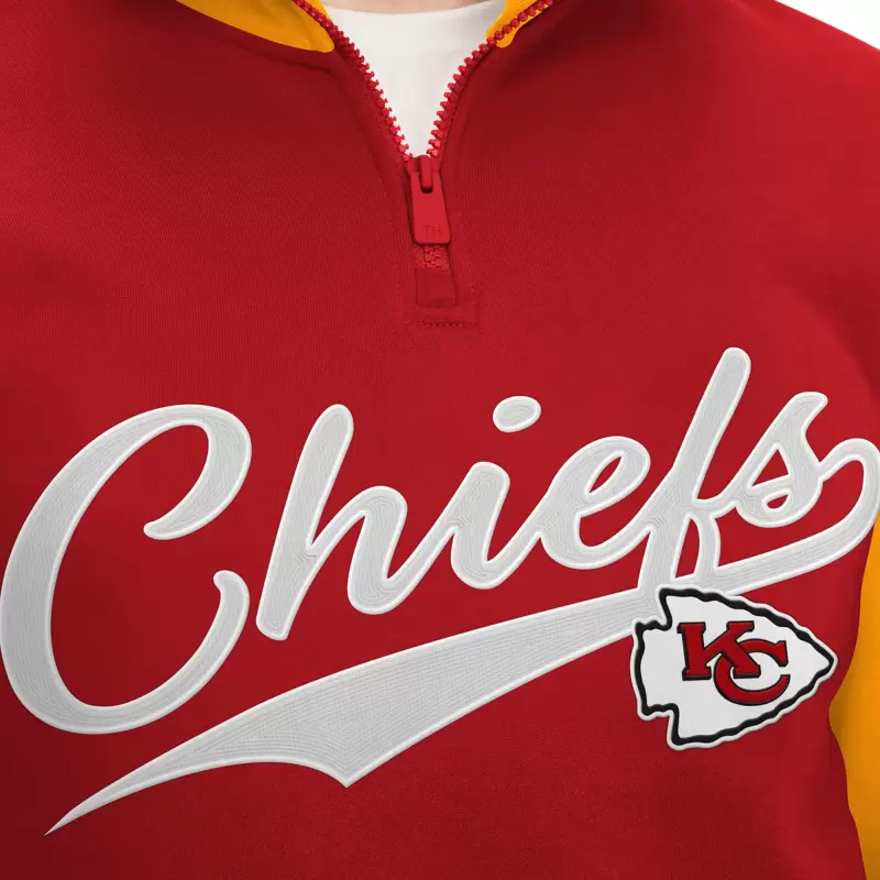 The Tommy Hilfiger Men’s Tommy Hilfiger Red/Gold Kansas City Chiefs Aiden Quarter-Zip Sweatshirt is a must-have for any Kansas City Chiefs fan. Made from a comfortable cotton and polyester blend, this sweatshirt features a quarter-zip closure, embroidered Kansas City Chiefs logo, and screen print graphics on the back. Whether you’re cheering on the Chiefs at the stadium or just relaxing at home, this sweatshirt will keep you warm and stylish.