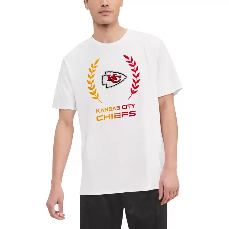 The Tommy Hilfiger Men’s Tommy Hilfiger White Kansas City Chiefs Miles T-shirt is a must-have for loyal Kansas City Chiefs fans. Screen print graphics and embroidered fabric appliqué proudly display your Chiefs allegiance. The droptail hem with side splits adds style, making it perfect for game day or showing support anytime.