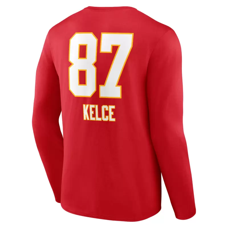 Men’s Travis Kelce Red Kansas City Chiefs Team Wordmark Player Name & Number Long Sleeve T-Shirt