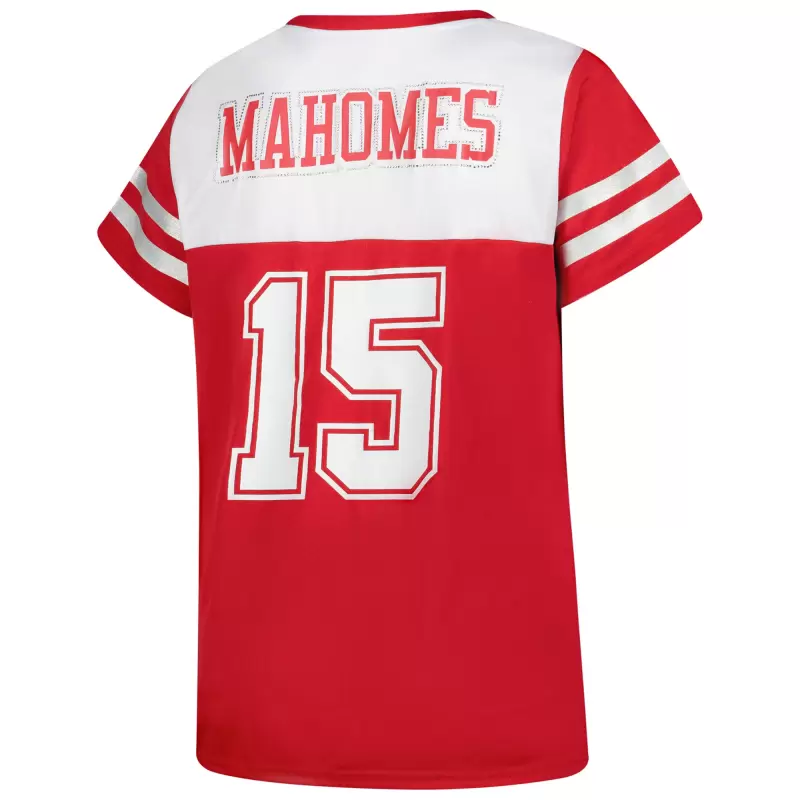 Women’s Fanatics Patrick Mahomes White Kansas City Chiefs Plus Size Bling V-Neck T-Shirt