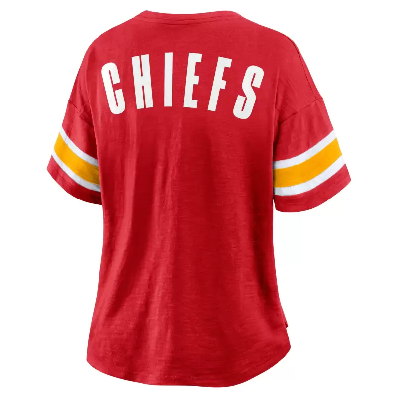 Put together a fashionable Kansas City Chiefs outfit with this Redzone Curl Route T-Shirt by Fanatics. Its relaxed fit and dropped shoulders create a flattering look that pairs perfectly with your favorite bottoms. The rounded droptail hem adds extra coverage, making this Kansas City Chiefs tee comfortable to wear all day.