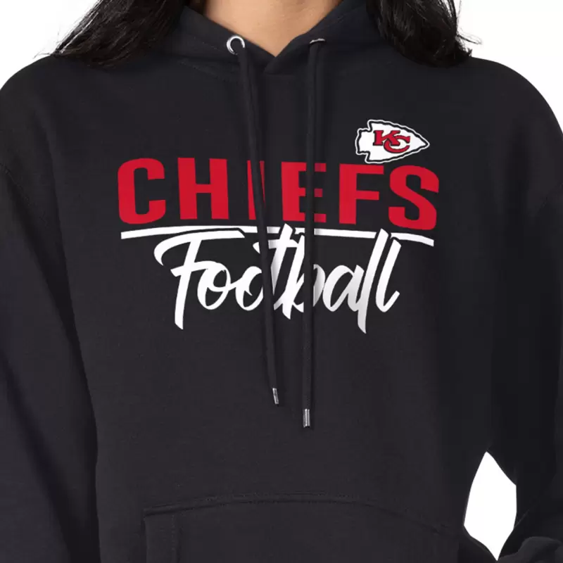 The Women’s G-III 4Her by Carl Banks Black Kansas City Chiefs Graphic Fleece Pullover Hoodie is the perfect way to show your unwavering support for the Kansas City Chiefs. Made from a comfortable cotton, polyester, and recycled polyester blend, this midweight hoodie is perfect for moderate temperatures. The screen-printed graphics proudly display the Kansas City Chiefs logo, so you can show your team spirit wherever you go. The front pouch pocket is perfect for storing your essentials, and the adjustable hood will keep you warm and comfortable on chilly days.
