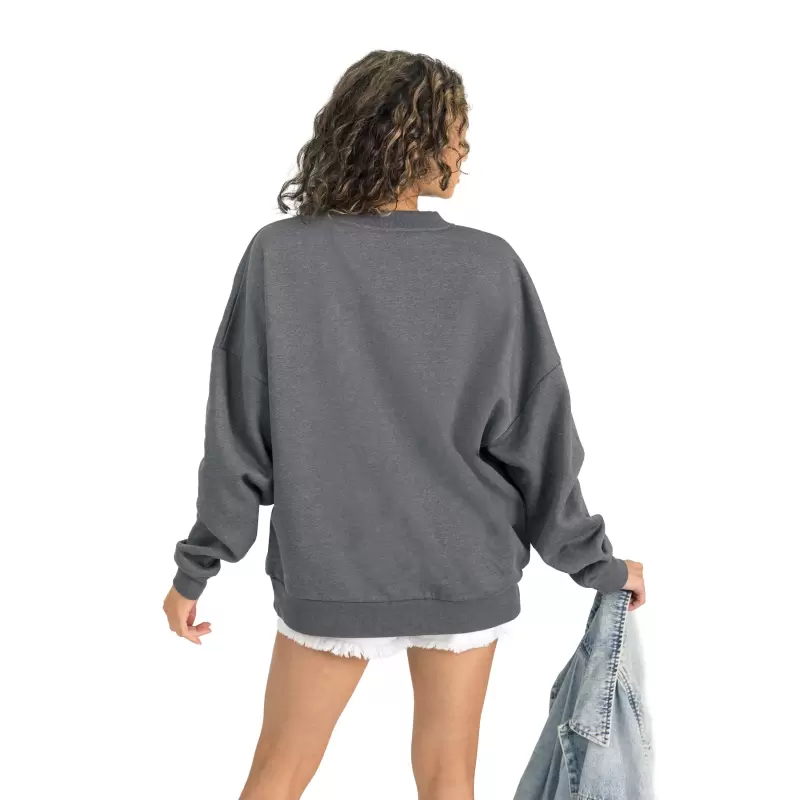 • Large distressed screen print graphics