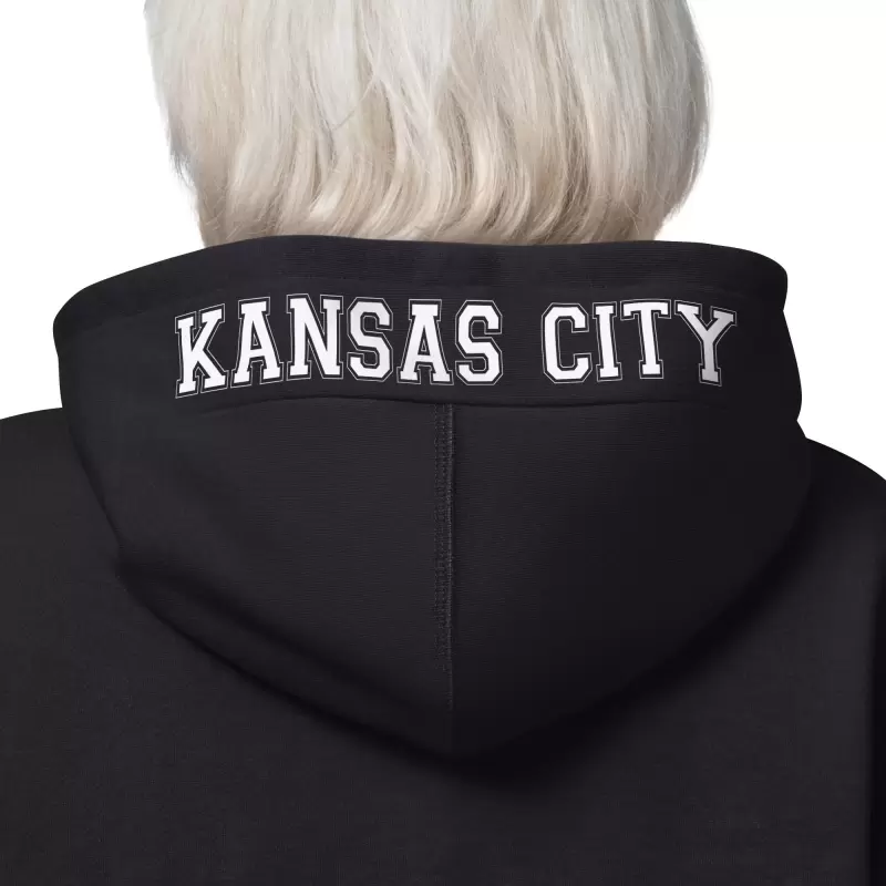 - Team helmet graphic printed on contrast-color right sleeve and wordmark on hood