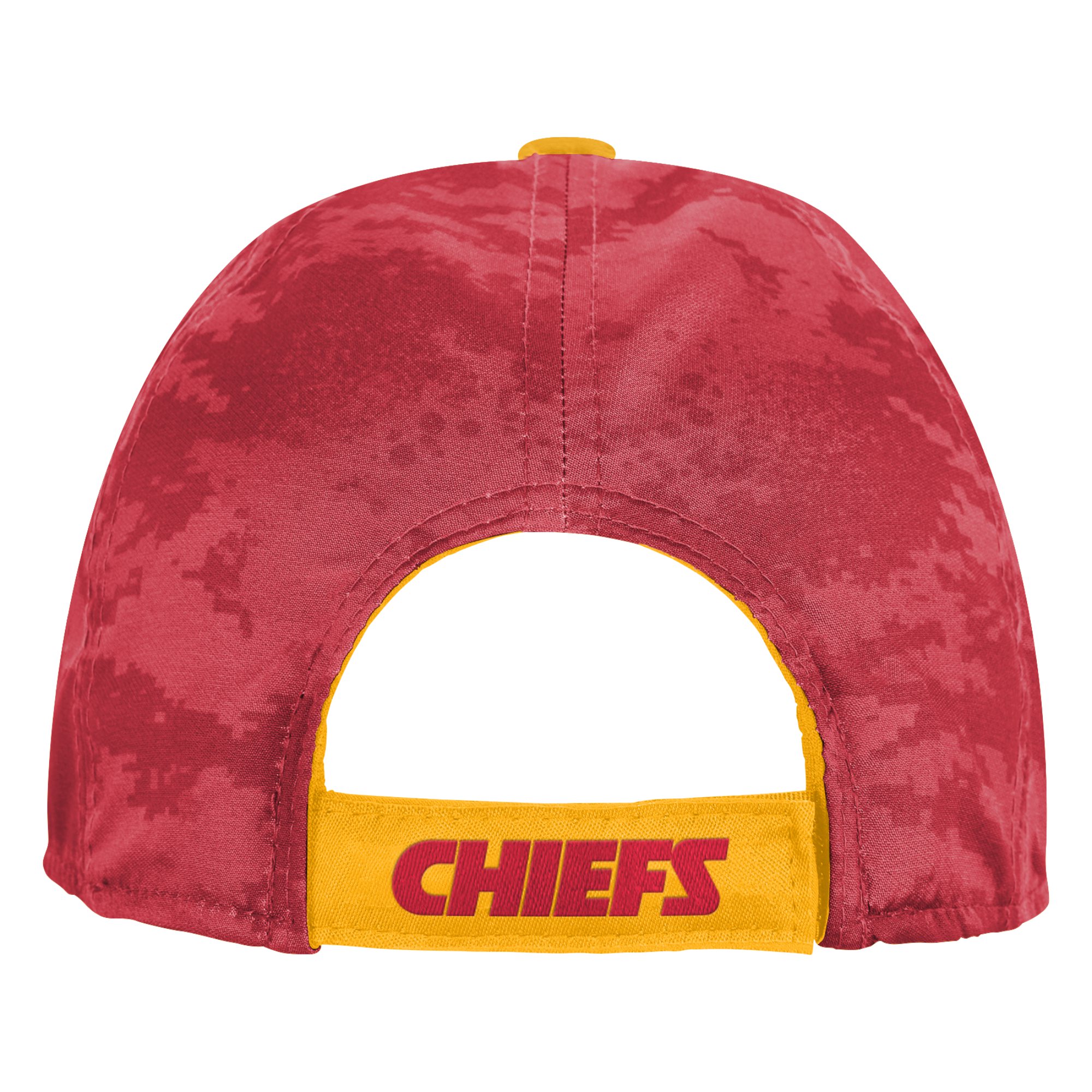 Get your young fan ready for gameday with this Kansas City Chiefs Combine Two-Tone Adjustable Hat. This two-tone hat features a unique design with a sublimated team logo graphic acting as the backdrop for the embroidered team logo on the front. The digital camo design on the mid and rear panels adds a stylish touch. With its adjustable hook and loop fastener strap, this hat offers a customizable fit for ultimate comfort.