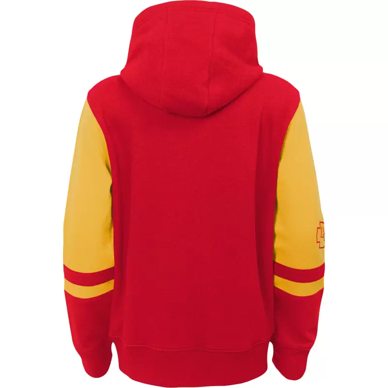 If your kiddo is a die-hard Kansas City Chiefs fan, then be sure to add this Colorblock full-zip hoodie to their rotation. It features a bold team logo on the chest, as well as contrast-color sleeves, lining inside of the hood and trim around the two front pockets. The fleece lining is sure to keep your young fan warm and comfy while they cheer the Kansas City Chiefs on to victory.